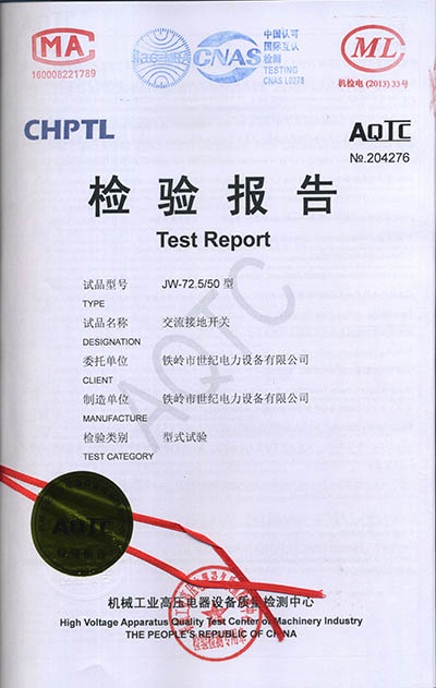 交流接地開關(guān)檢驗(yàn)報(bào)告