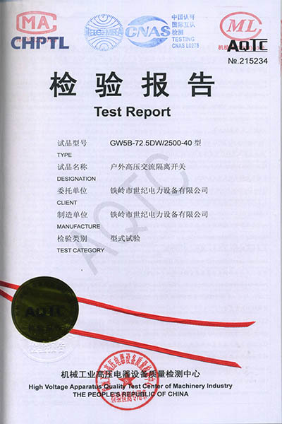 戶外高壓交流隔離開(kāi)關(guān)檢驗(yàn)報(bào)告