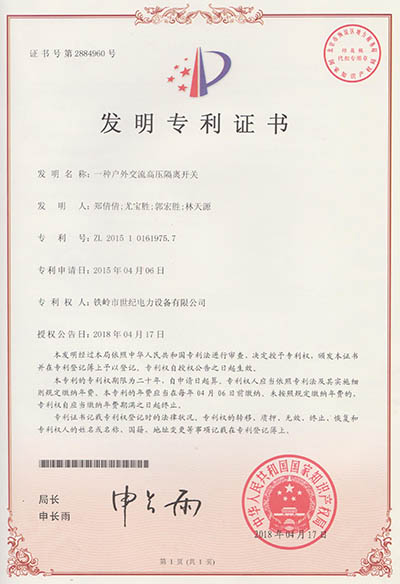 發(fā)明專利證書